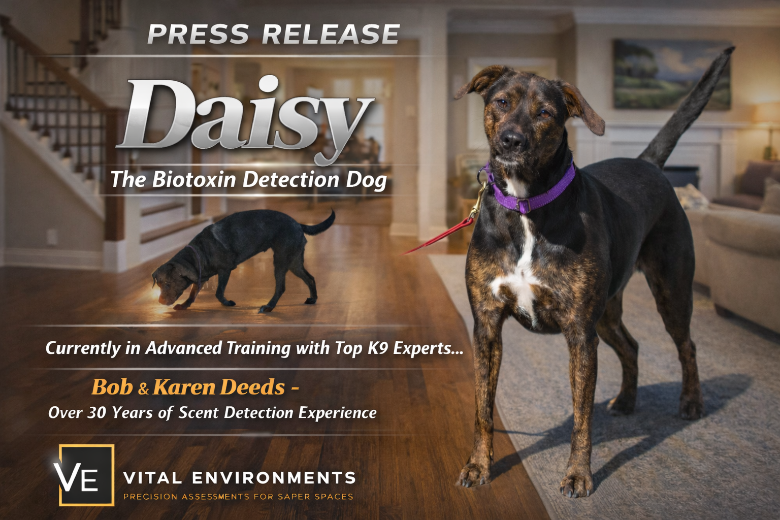 Miss Daisy is currently receiving advanced scent detection training under experts Bob and Karen Deeds, who have trained scent detection working dogs for over 30 years.